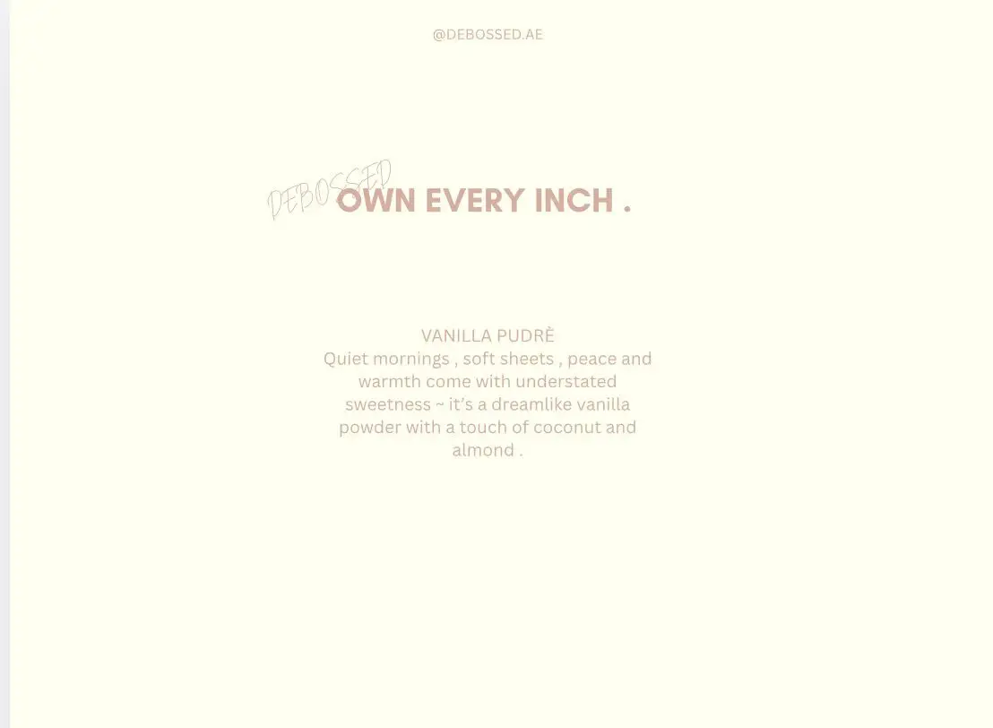 Notes : Coconut, almond , vanilla , powder . Description : Quiet mornings , soft sheets , peace and warmth come with understated sweetness ~ it’s a dreamlike vanilla powder with a touch of coconut and almond.