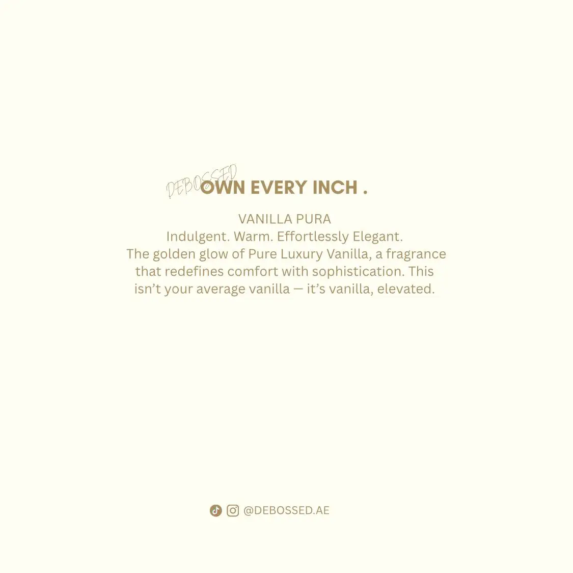 VANILLA PURA Notes : Cashmere Wood, Amber, Vanilla Bean, Musk . Description: Indulgent. Warm. Effortlessly Elegant. The golden glow of Pure Luxury Vanilla, a fragrance that redefines comfort with sophistication. This isn’t your average vanilla — it’s vanilla, elevated.